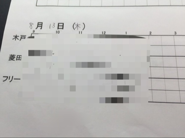 とりあえず13日(木)の予約表を載せます
